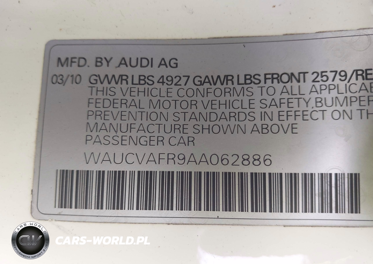 IAAI Nr: I-44816257 VIN: WAUCVAFR9AA062886 Port: Elizabeth, NJ