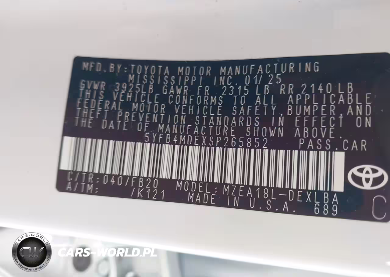 IAAI Nr: I-44816997 VIN: 5YFB4MDEXSP265852 Port: Savannah, GA