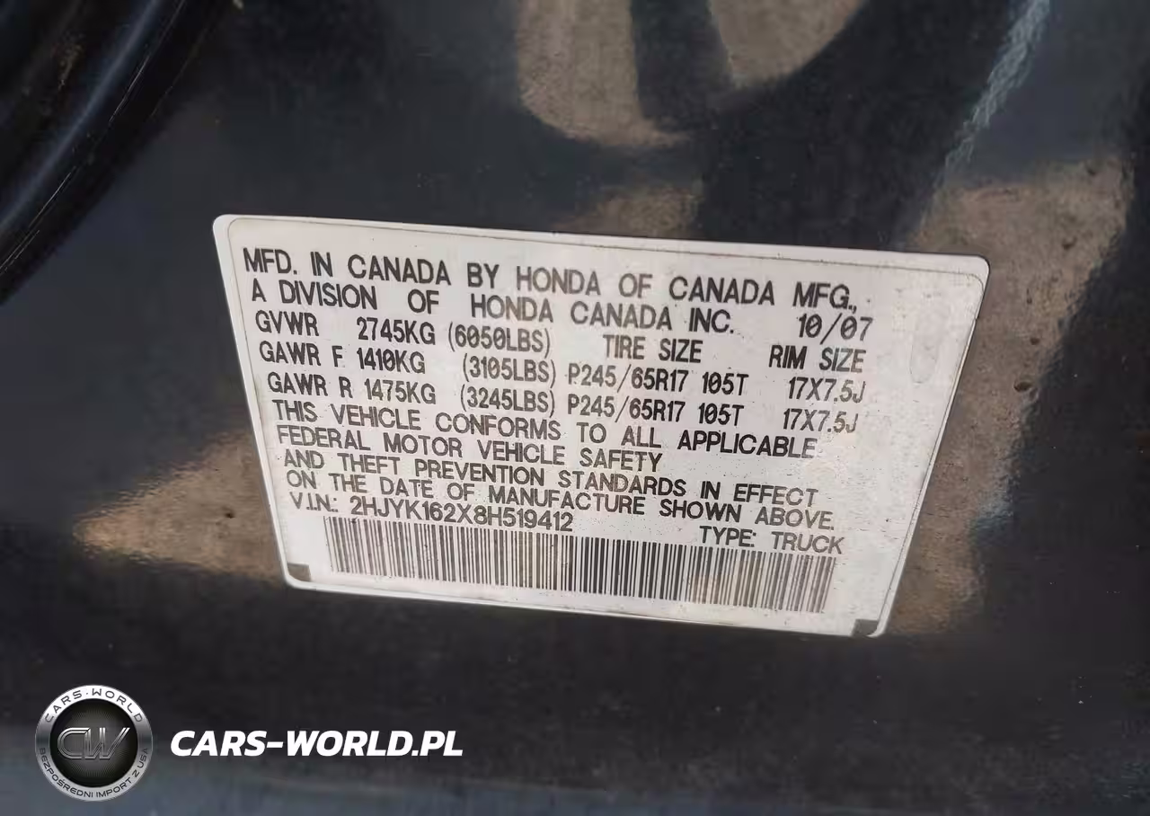 IAAI Nr: I-44817194 VIN: 2HJYK162X8H519412 Port: Houston, TX