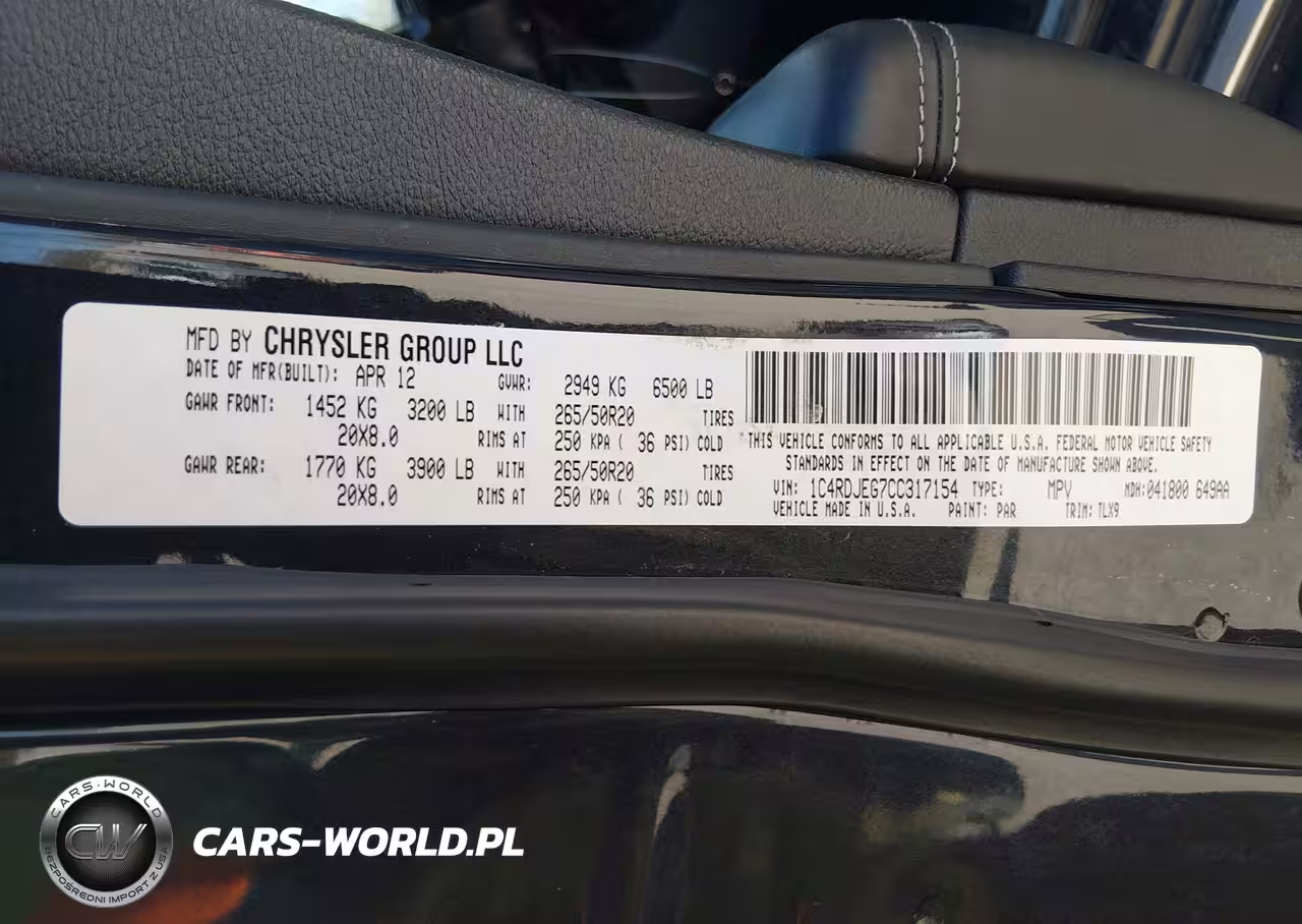IAAI Nr: I-44817659 VIN: 1C4RDJEG7CC317154 Port: Elizabeth, NJ