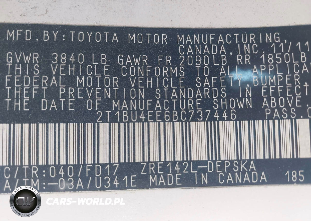IAAI Nr: I-44817938 VIN: 2T1BU4EE6BC737446 Port: Los Angeles, CA