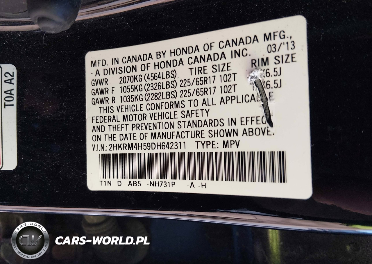 IAAI Nr: I-44818122 VIN: 2HKRM4H59DH642311 Port: Elizabeth, NJ