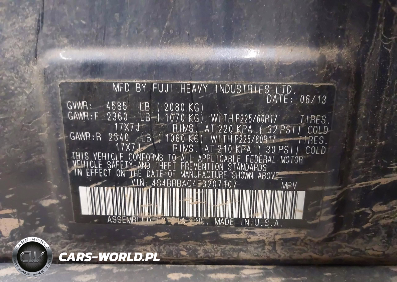 IAAI Nr: I-44818705 VIN: 4S4BRBAC4E3207107 Port: Indianapolis, IN