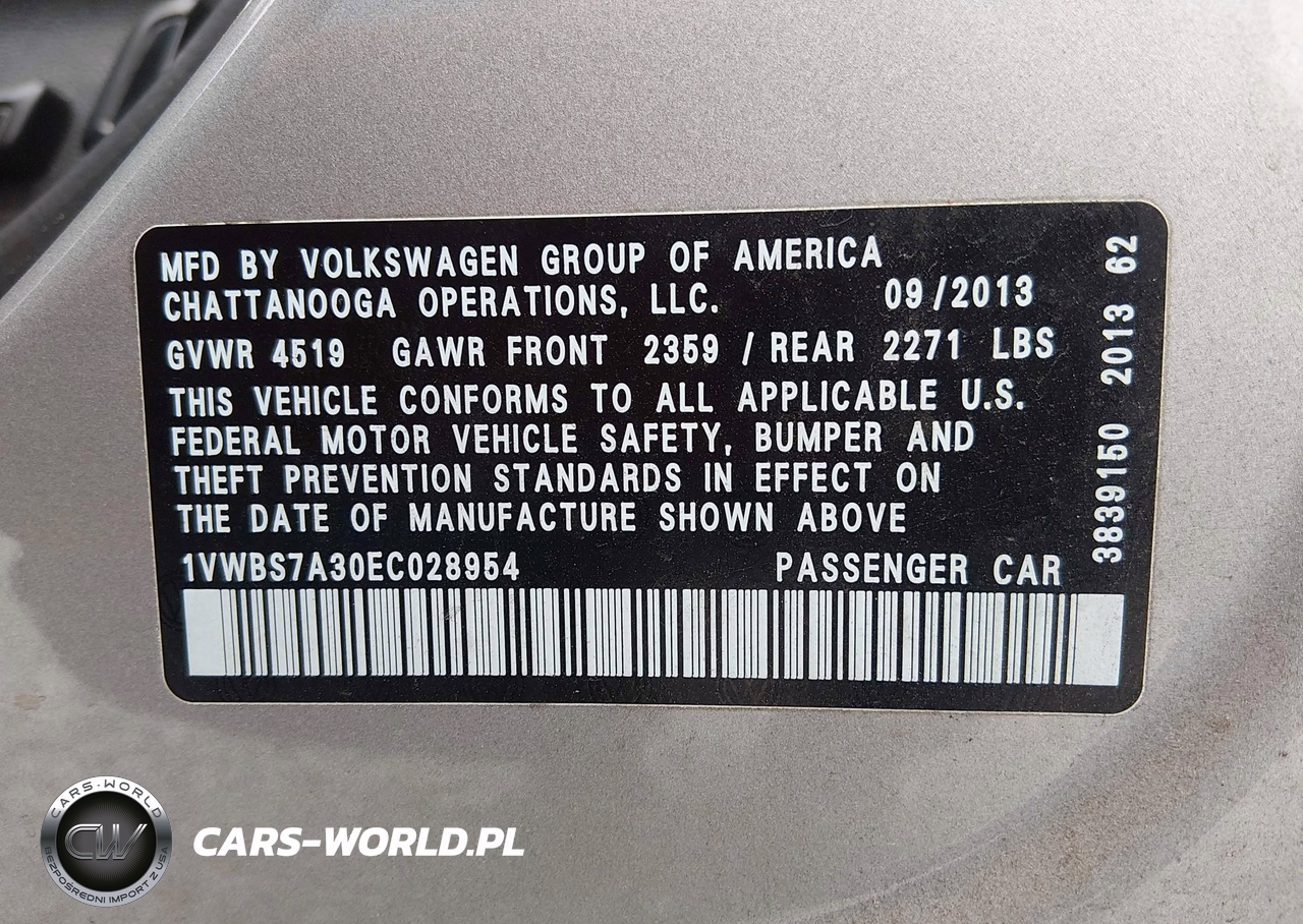 IAAI Nr: I-44818993 VIN: 1VWBS7A30EC028954 Port: Savannah, GA