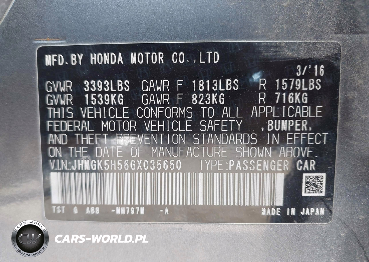 IAAI Nr: I-44819299 VIN: JHMGK5H56GX035650 Port: Indianapolis, IN