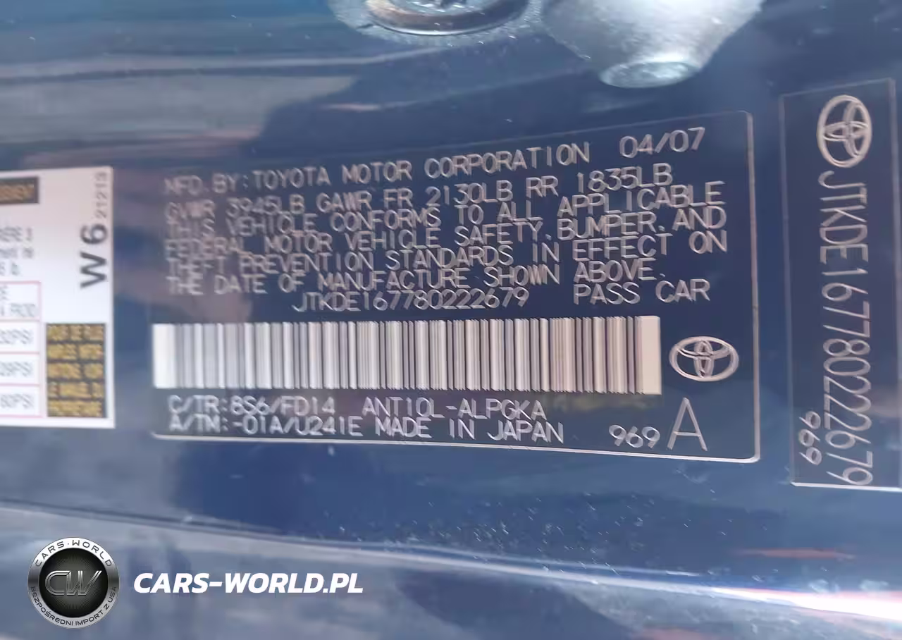 IAAI Nr: I-44819405 VIN: JTKDE167780222679 Port: Los Angeles, CA