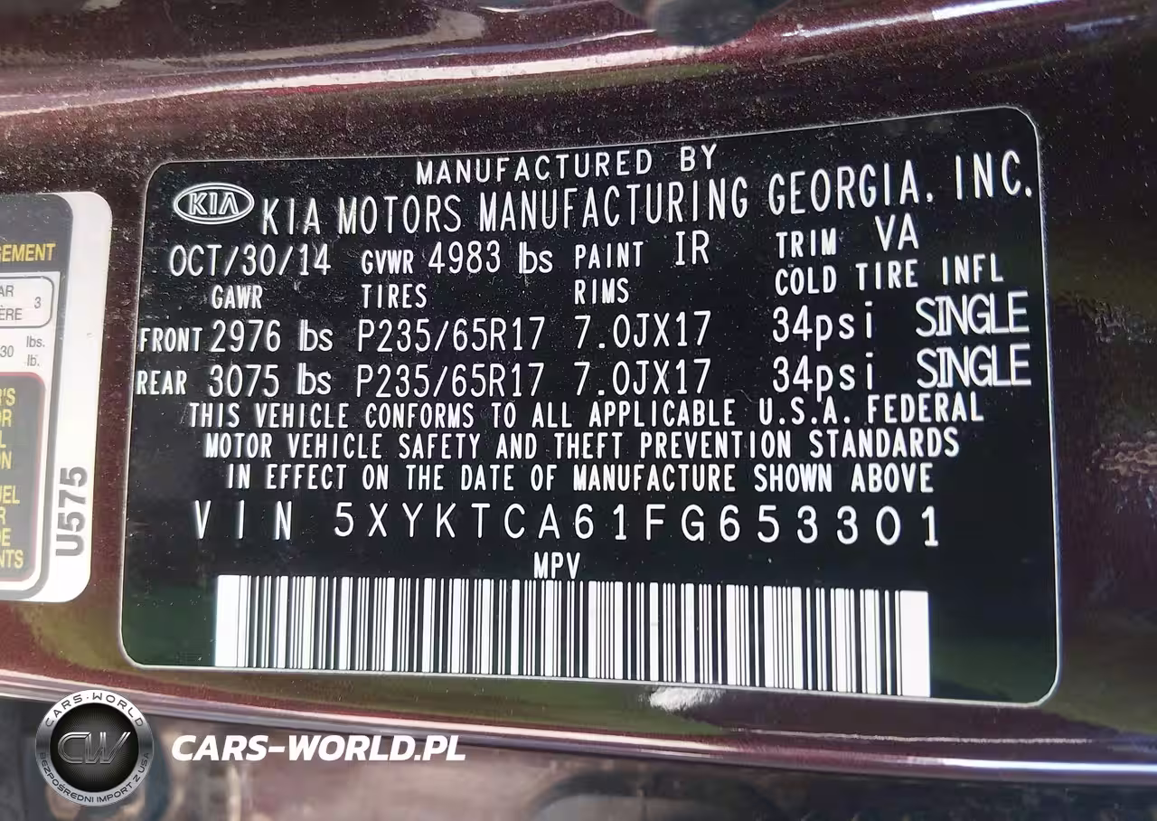 IAAI Nr: I-44819473 VIN: 5XYKTCA61FG653301 Port: Elizabeth, NJ