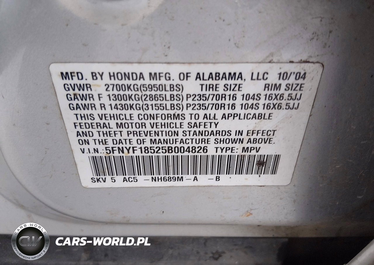 5FNYF18525B004826