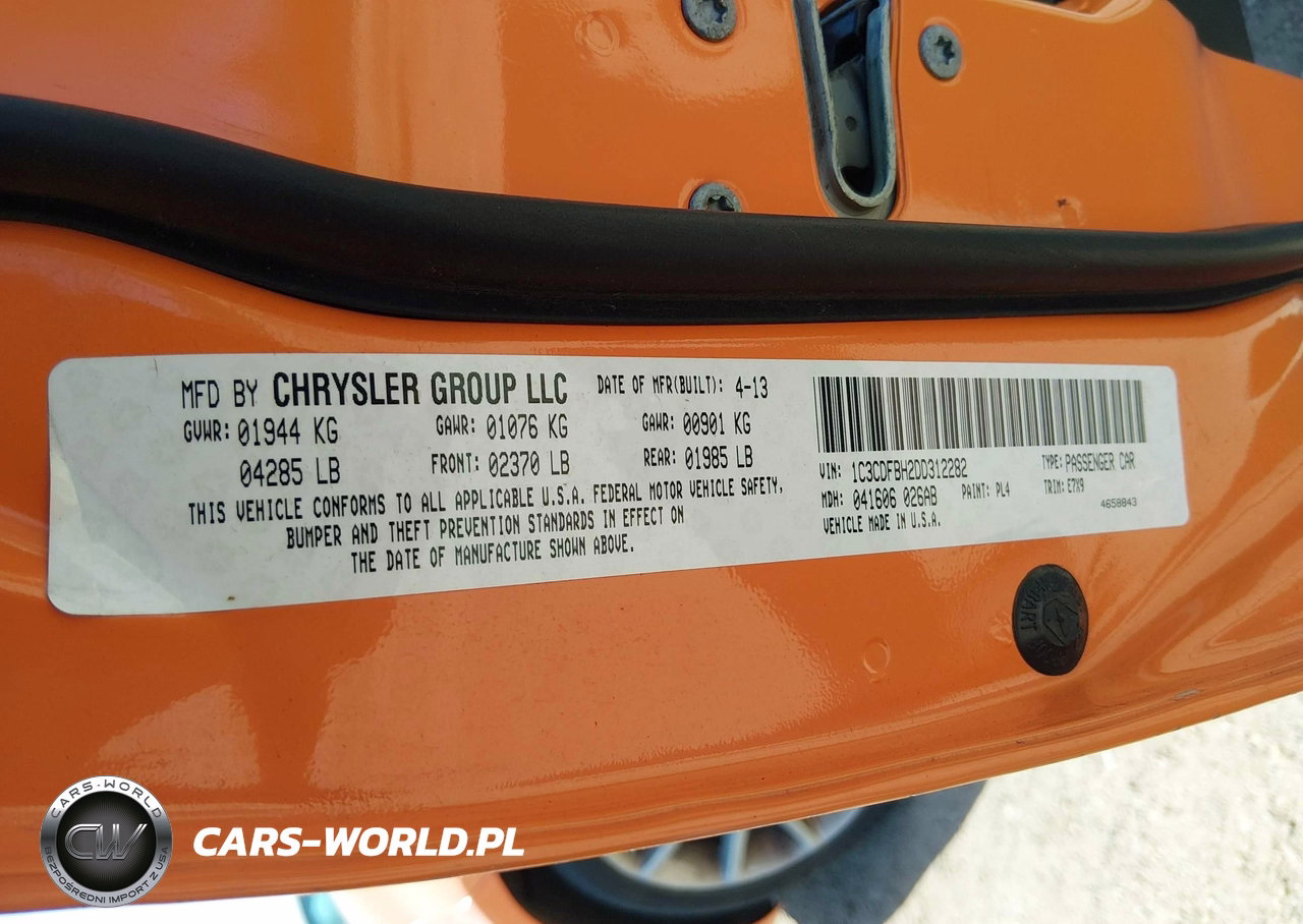 IAAI Nr: I-44819928 VIN: 1C3CDFBH2DD312282 Port: Elizabeth, NJ
