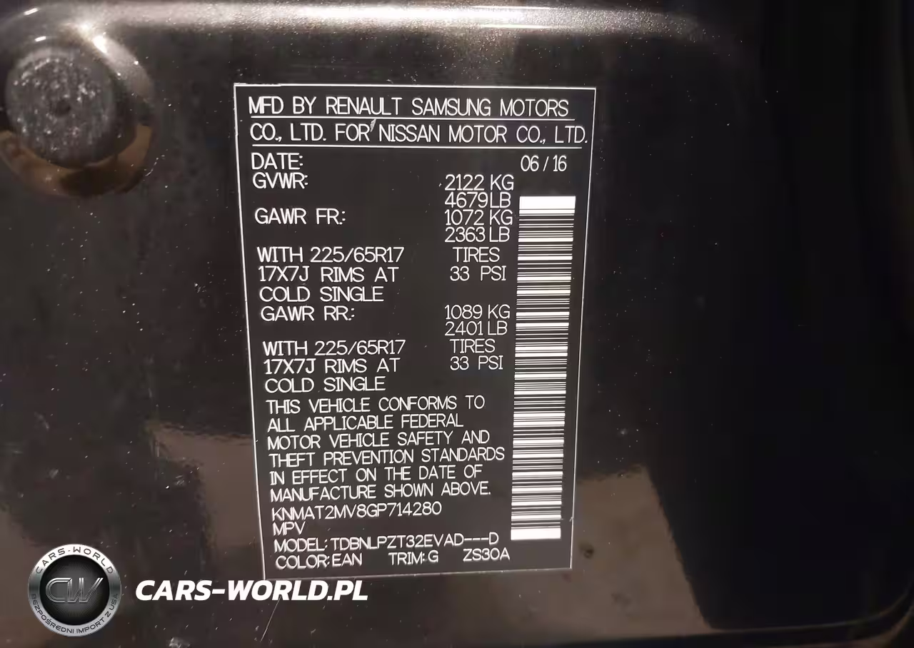 IAAI Nr: I-44820111 VIN: KNMAT2MV8GP714280 Port: Elizabeth, NJ