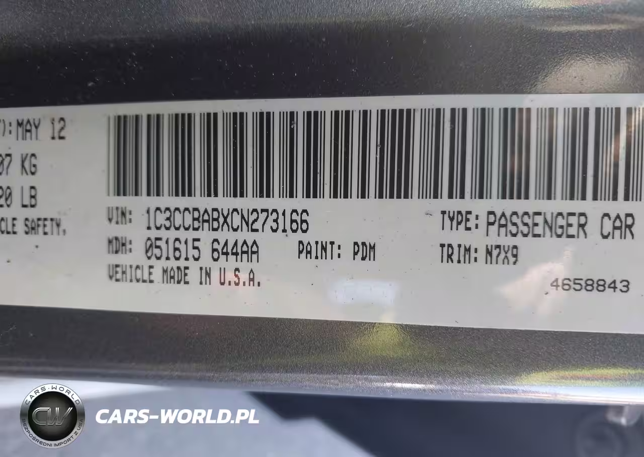 IAAI Nr: I-44820296 VIN: 1C3CCBABXCN273166 Port: Savannah, GA