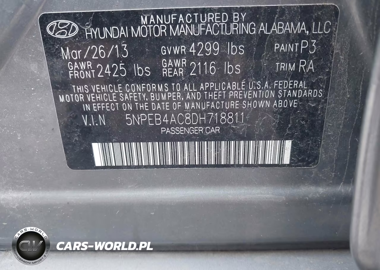 IAAI Nr: I-44820346 VIN: 5NPEB4AC8DH718811 Port: Indianapolis, IN