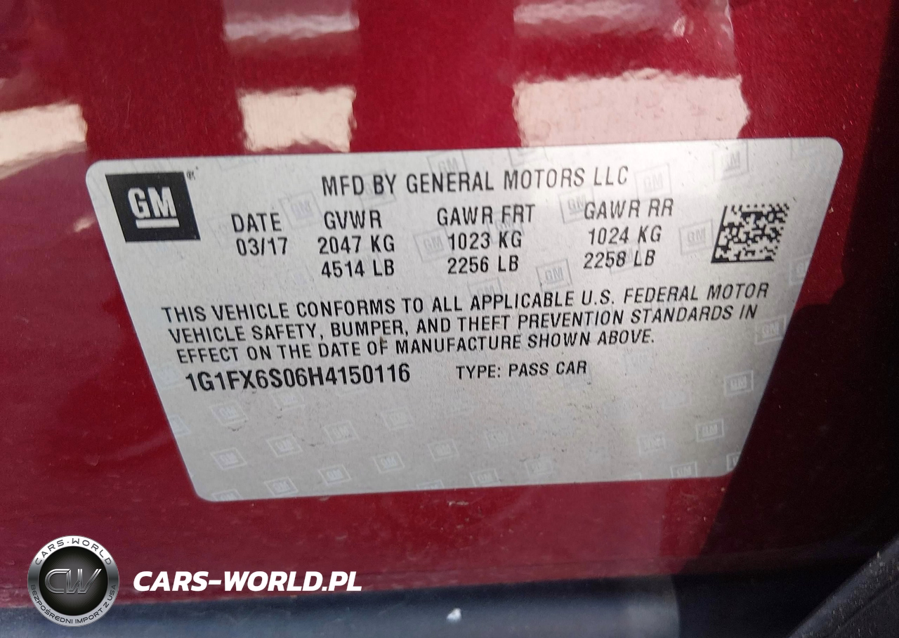 IAAI Nr: I-44822167 VIN: 1G1FX6S06H4150116 Port: Los Angeles, CA