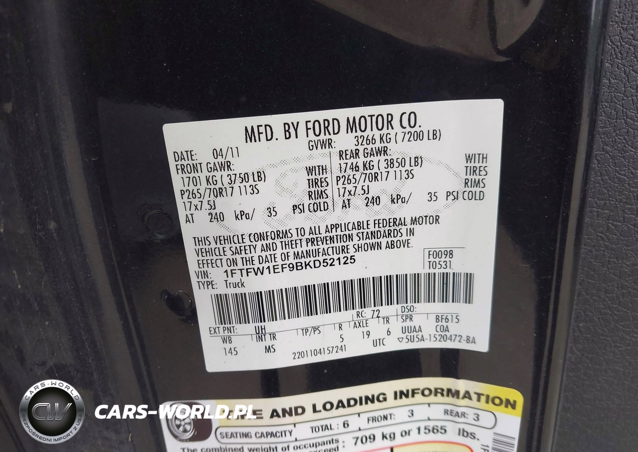 IAAI Nr: I-44822327 VIN: 1FTFW1EF9BKD52125 Port: Elizabeth, NJ