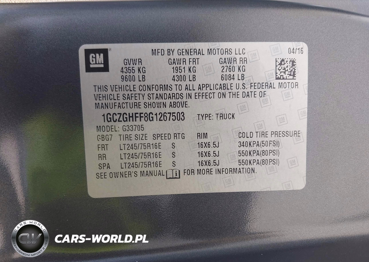 IAAI Nr: I-44822363 VIN: 1GCZGHFF8G1267503 Port: Savannah, GA