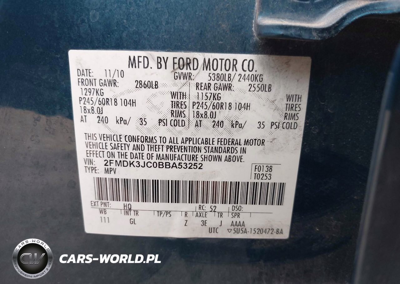 IAAI Nr: I-44822491 VIN: 2FMDK3JC0BBA53252 Port: Houston, TX