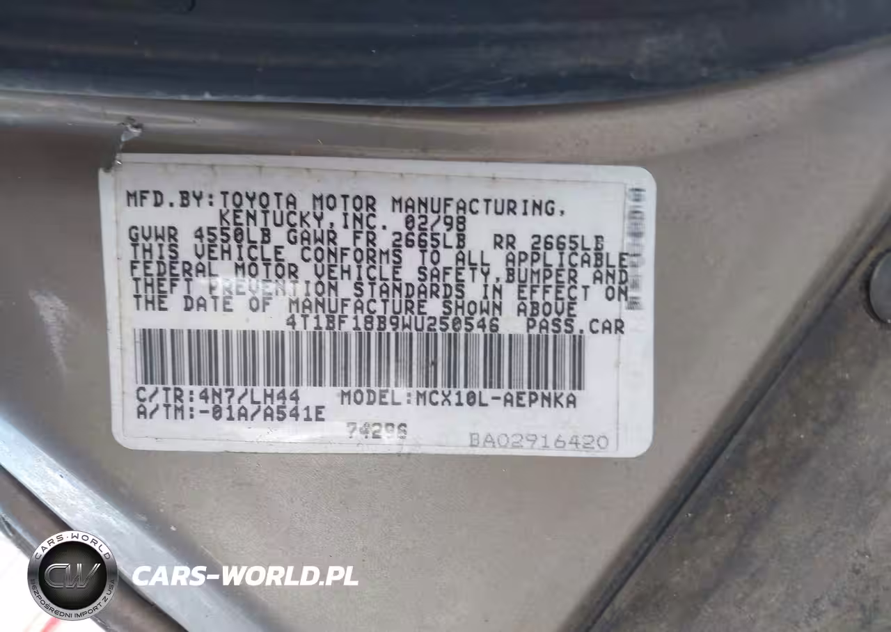 IAAI Nr: I-44823009 VIN: 4T1BF18B9WU250546 Port: Houston, TX