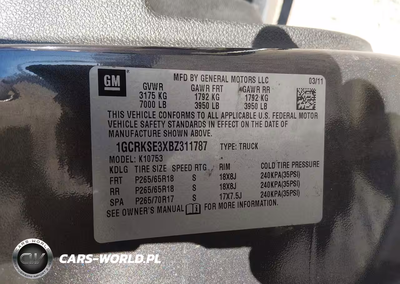 IAAI Nr: I-44823137 VIN: 1GCRKSE3XBZ311787 Port: Elizabeth, NJ