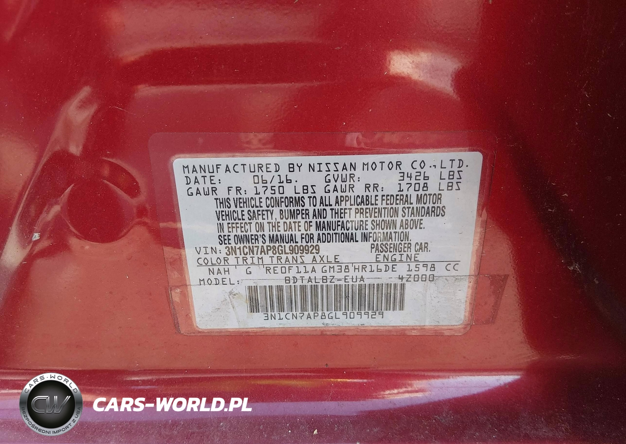 IAAI Nr: I-44823998 VIN: 3N1CN7AP8GL909929 Port: Houston, TX