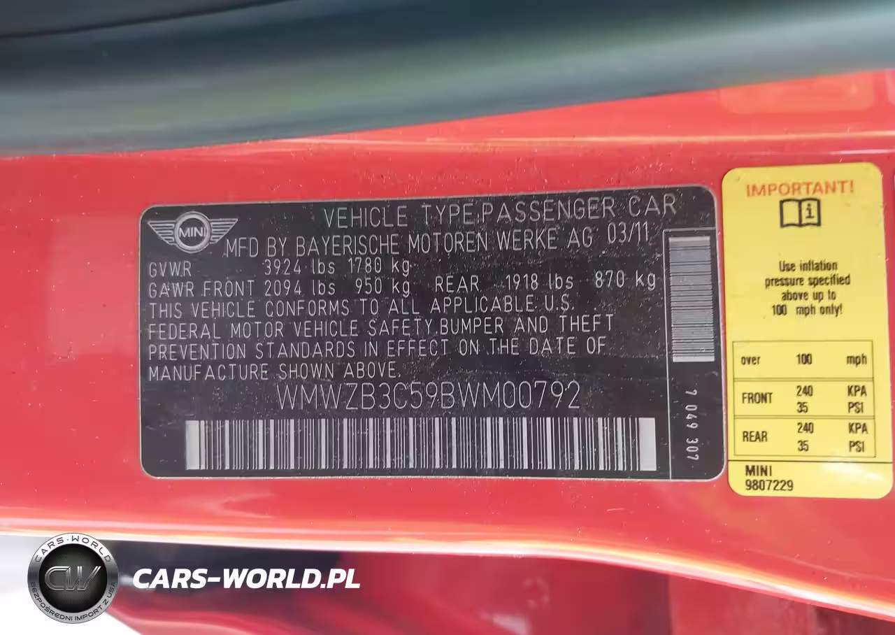 IAAI Nr: I-44824285 VIN: WMWZB3C59BWM00792 Port: Los Angeles, CA