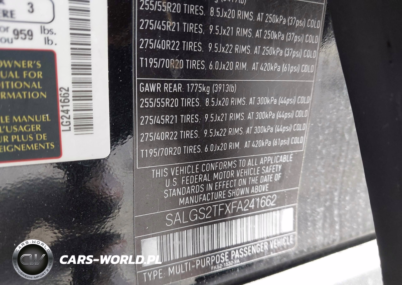IAAI Nr: I-44825254 VIN: SALGS2TFXFA241662 Port: Savannah, GA