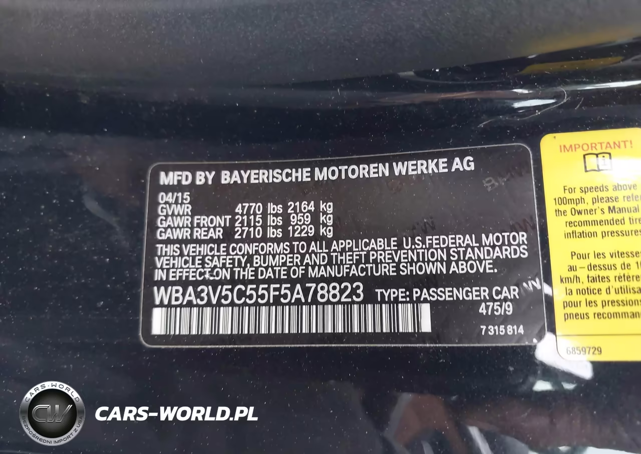 IAAI Nr: I-44825307 VIN: WBA3V5C55F5A78823 Port: Elizabeth, NJ