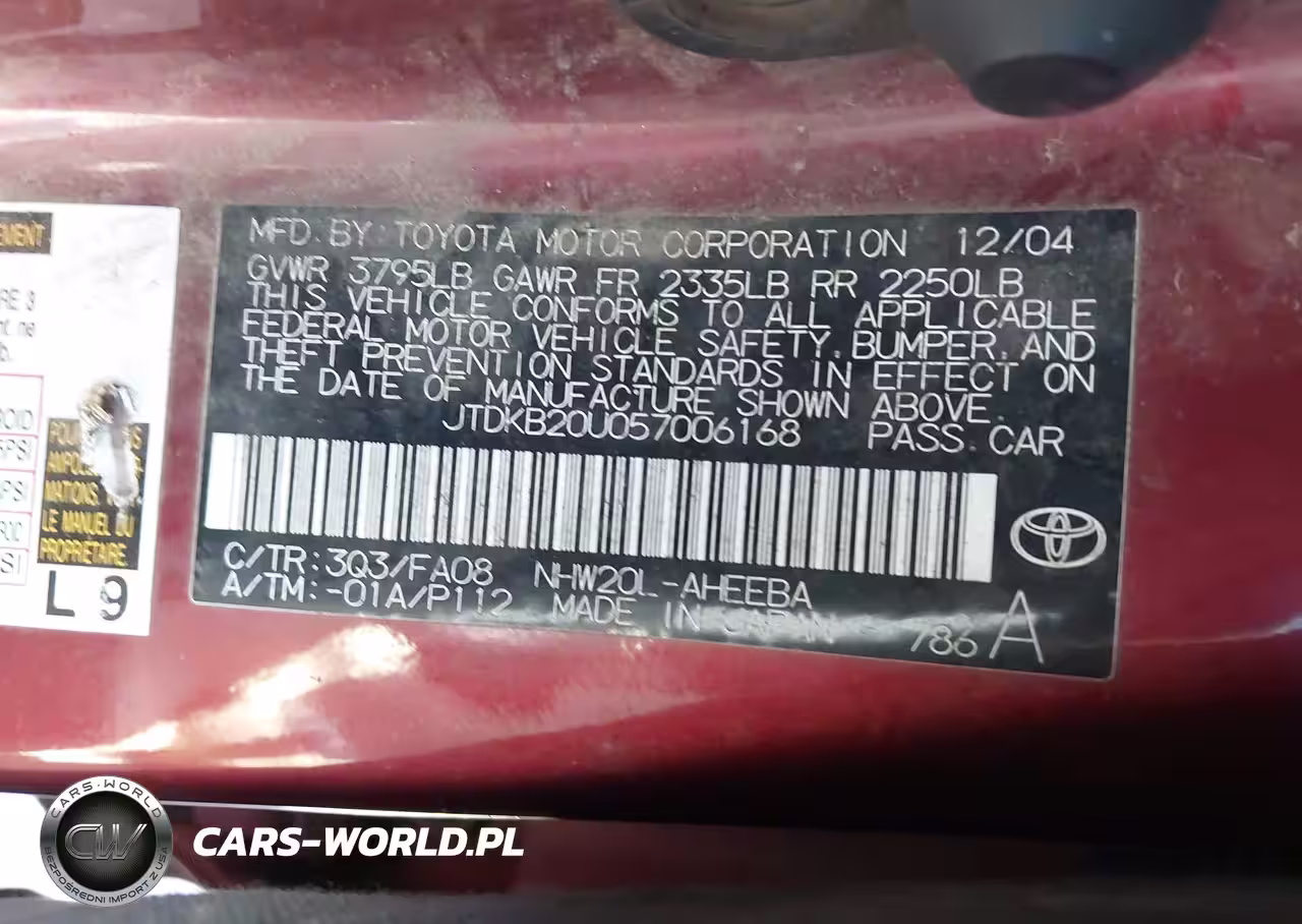 IAAI Nr: I-44825437 VIN: JTDKB20U057006168 Port: Los Angeles, CA