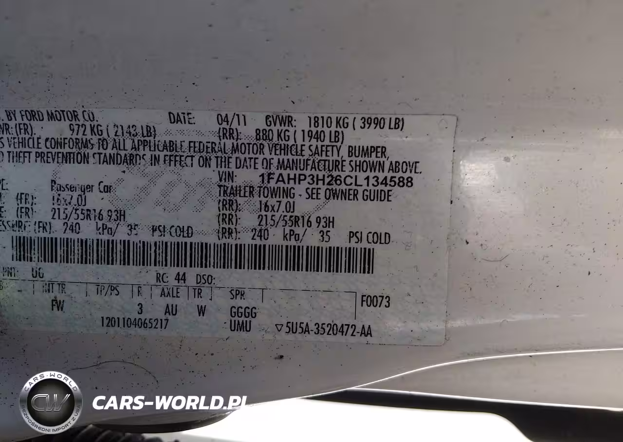 IAAI Nr: I-44825507 VIN: 1FAHP3H26CL134588 Port: Elizabeth, NJ