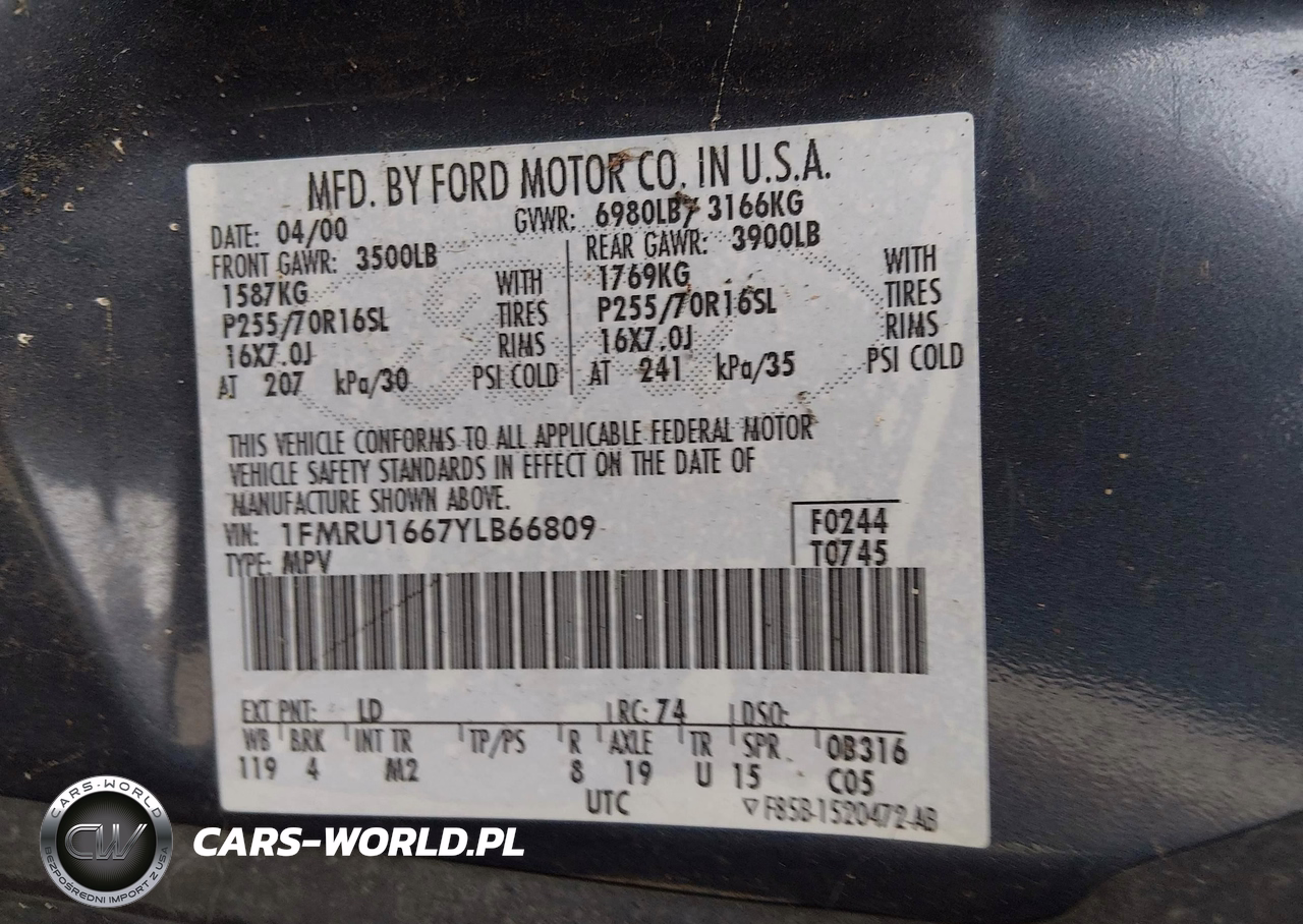 IAAI Nr: I-44825552 VIN: 1FMRU1667YLB66809 Port: Los Angeles, CA