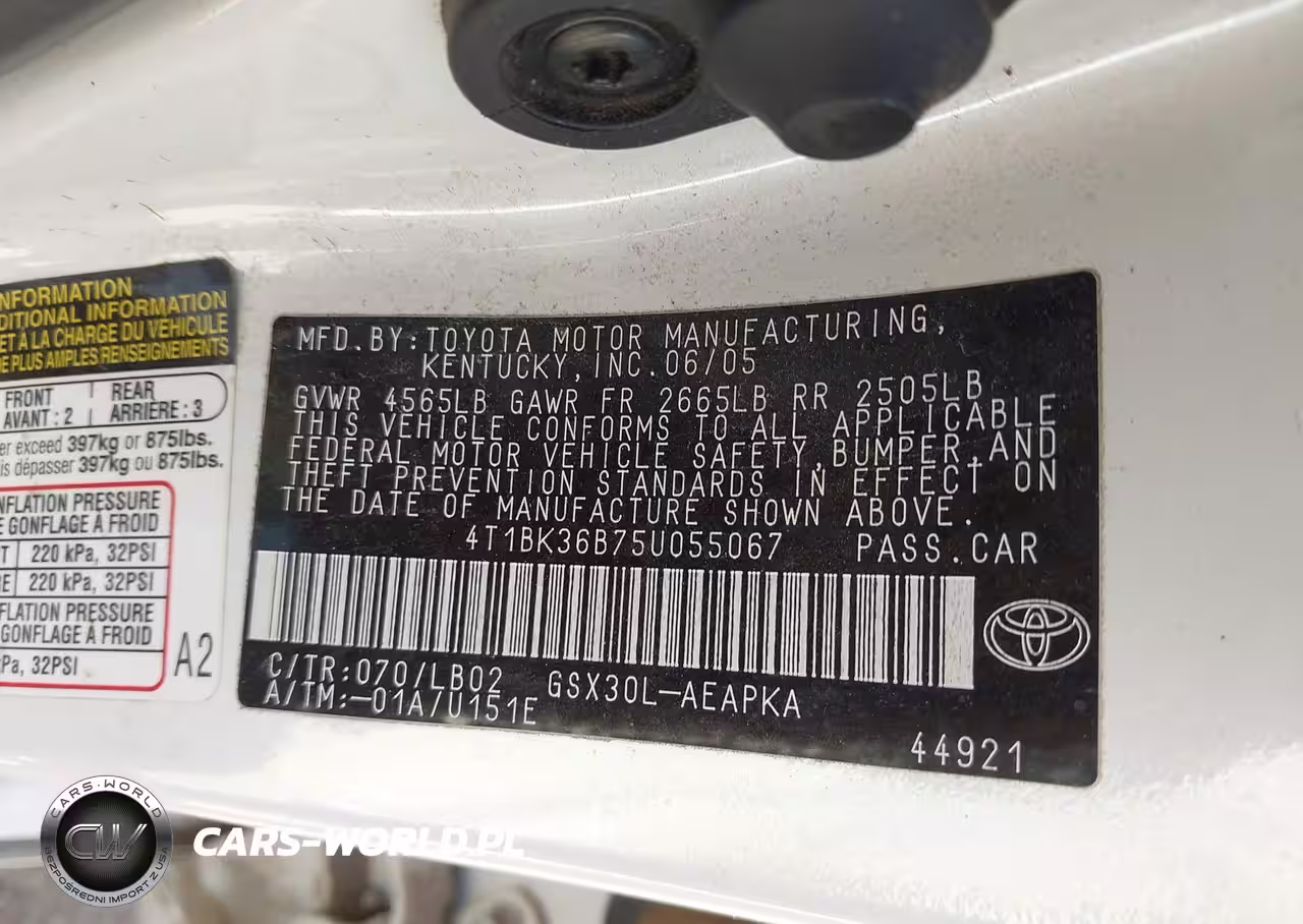 IAAI Nr: I-44825902 VIN: 4T1BK36B75U055067 Port: Los Angeles, CA
