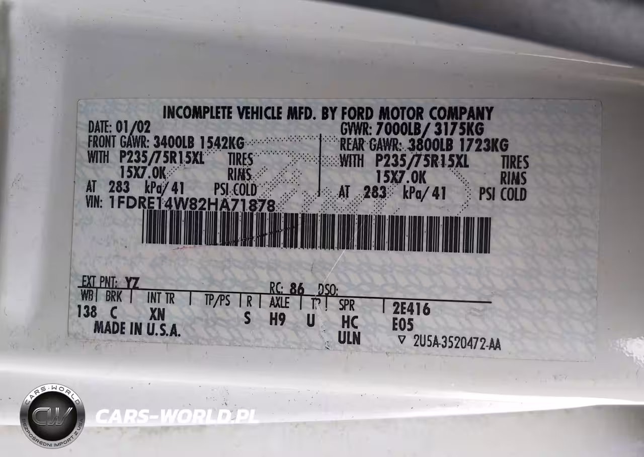IAAI Nr: I-44826691 VIN: 1FDRE14W82HA71878 Port: Elizabeth, NJ