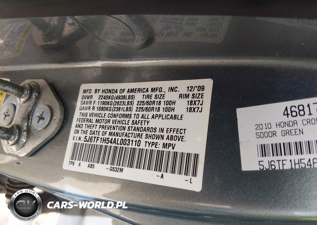 IAAI Nr: I-44826706 VIN: 5J6TF1H54AL003110 Port: Houston, TX