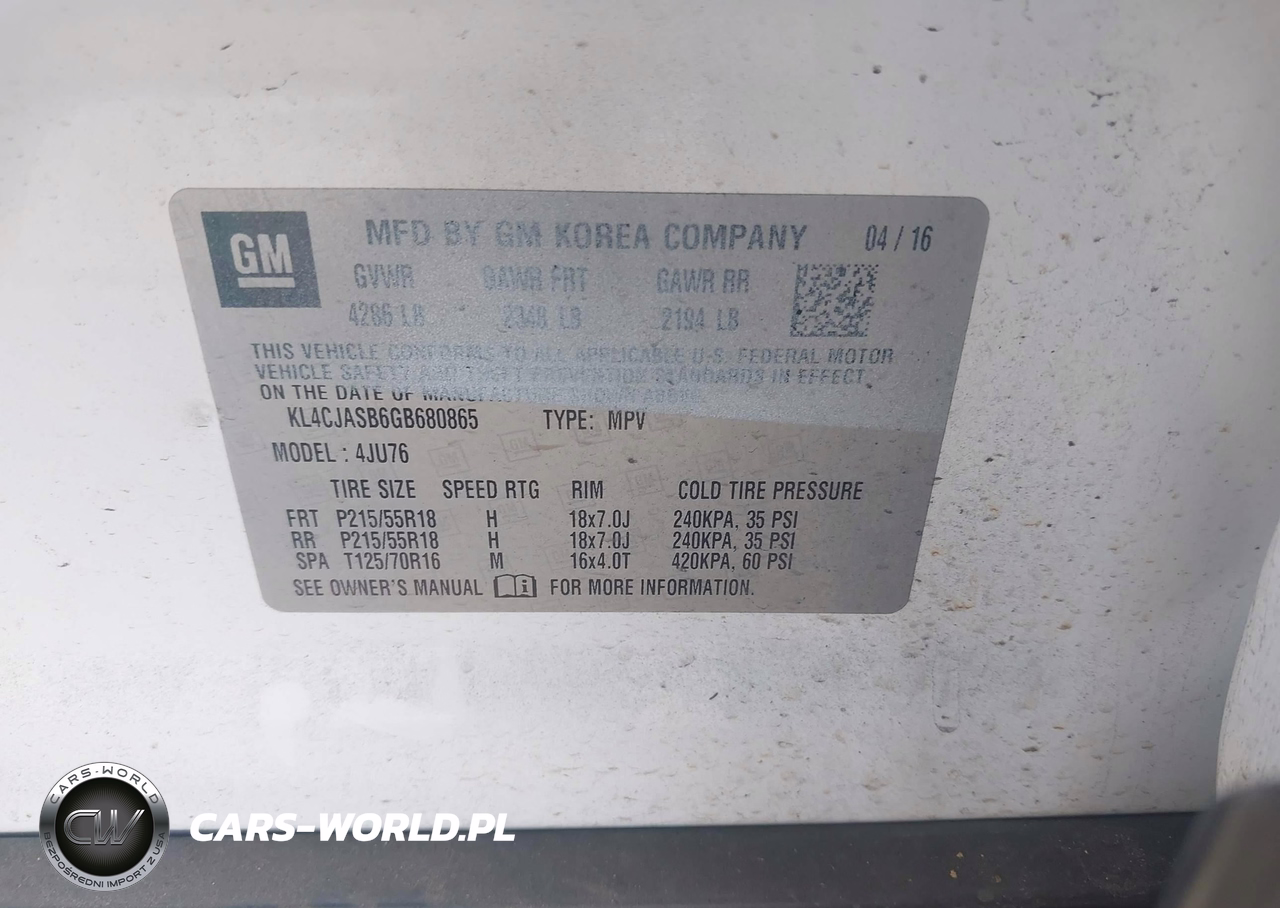 IAAI Nr: I-44827165 VIN: KL4CJASB6GB680865 Port: Houston, TX