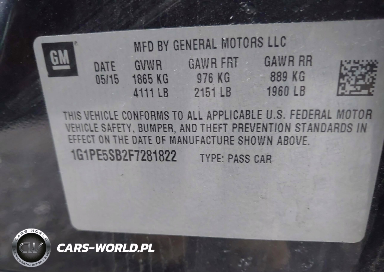 IAAI Nr: I-44828294 VIN: 1G1PE5SB2F7281822 Port: Elizabeth, NJ