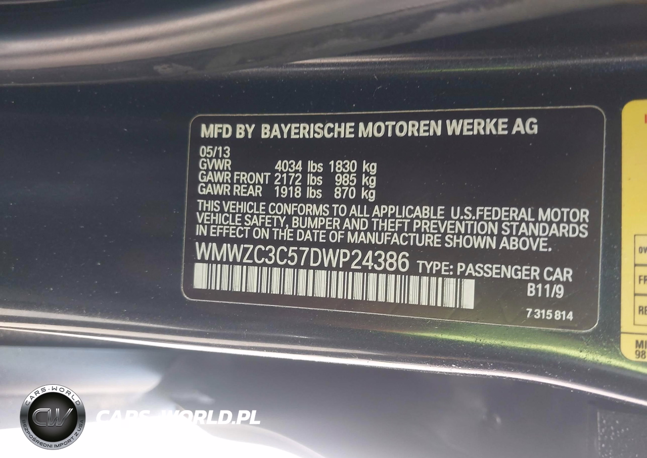 IAAI Nr: I-44828656 VIN: WMWZC3C57DWP24386 Port: Houston, TX