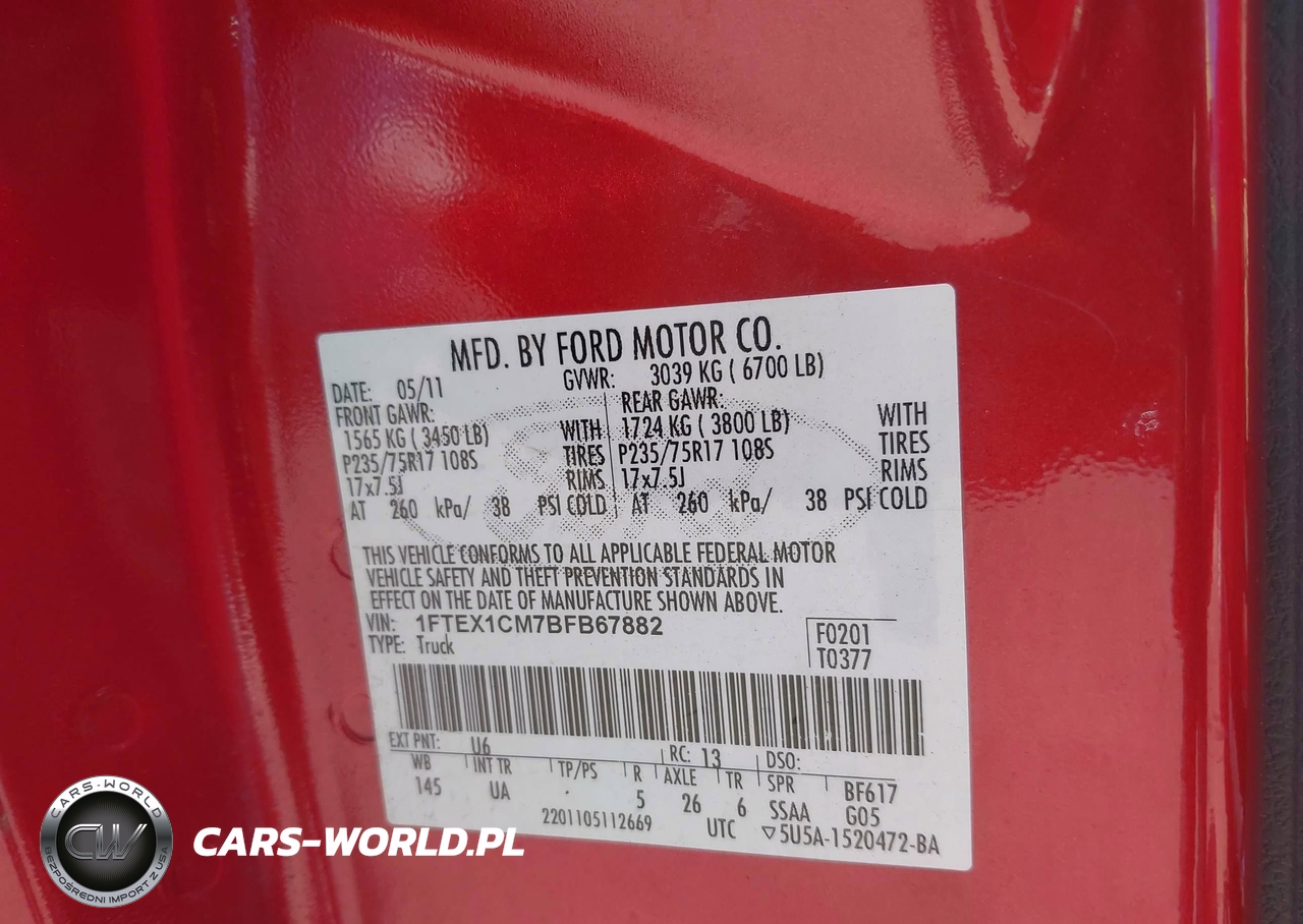 IAAI Nr: I-44828763 VIN: 1FTEX1CM7BFB67882 Port: Elizabeth, NJ