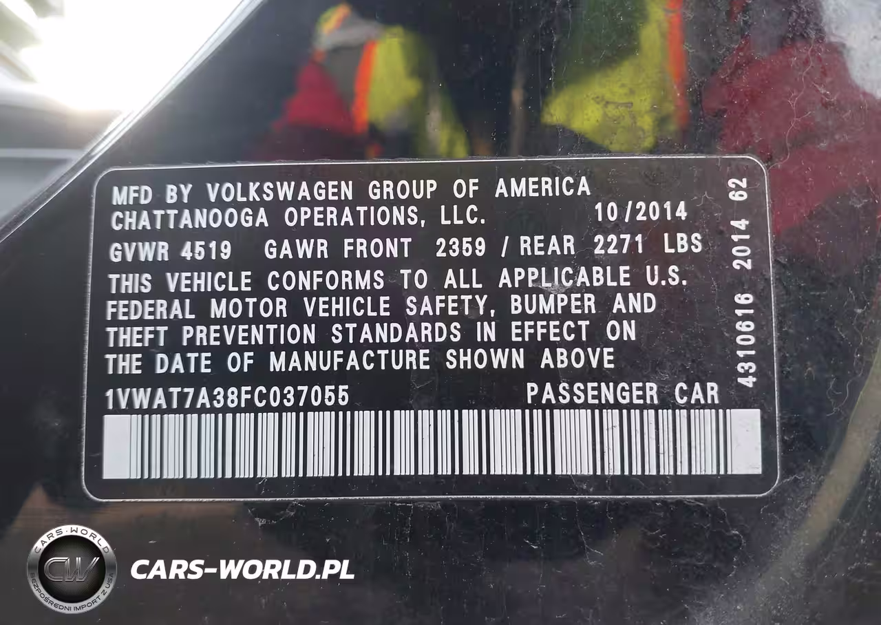 IAAI Nr: I-44829632 VIN: 1VWAT7A38FC037055 Port: Indianapolis, IN