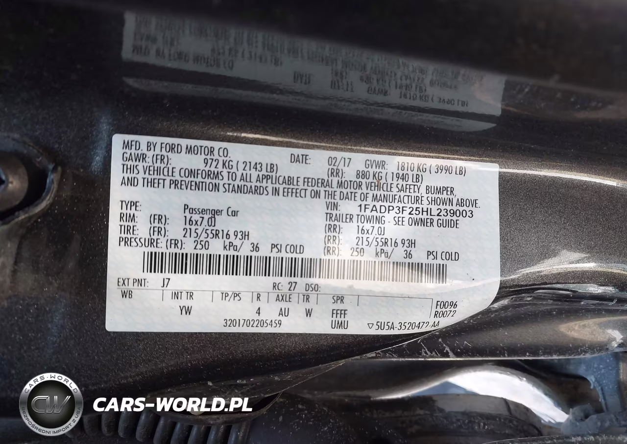 IAAI Nr: I-44830305 VIN: 1FADP3F25HL239003 Port: Elizabeth, NJ