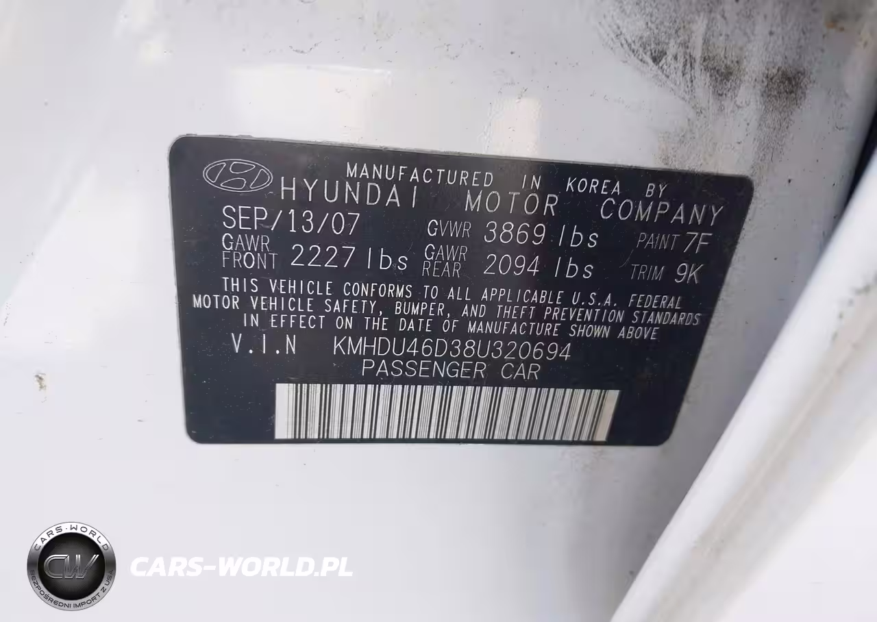 IAAI Nr: I-44831187 VIN: KMHDU46D38U320694 Port: Los Angeles, CA