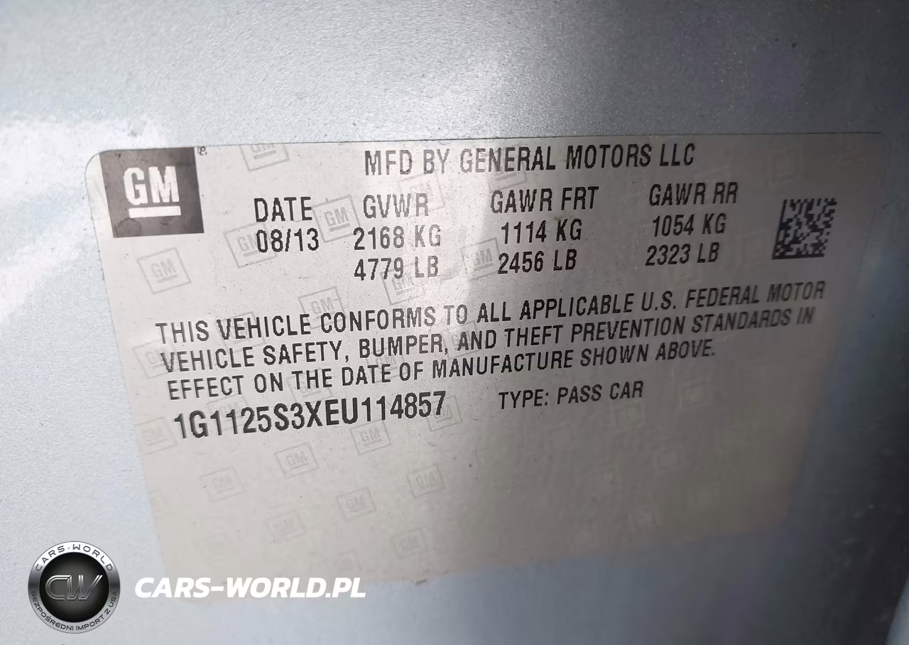 IAAI Nr: I-44831806 VIN: 1G1125S3XEU114857 Port: Indianapolis, IN
