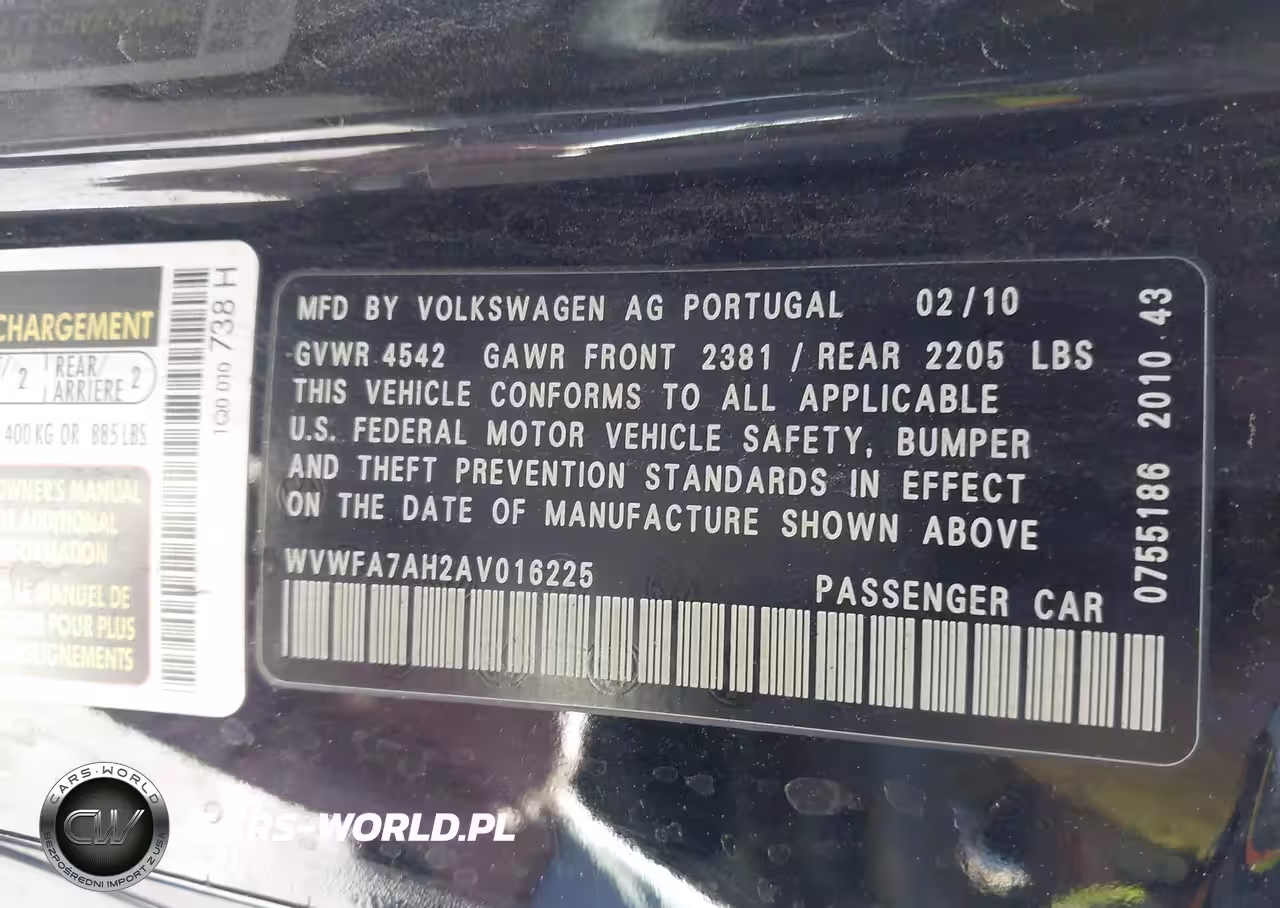 IAAI Nr: I-44831998 VIN: WVWFA7AH2AV016225 Port: Los Angeles, CA