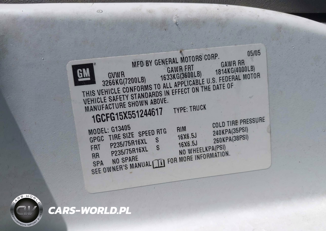 IAAI Nr: I-44832101 VIN: 1GCFG15X551244617 Port: Los Angeles, CA
