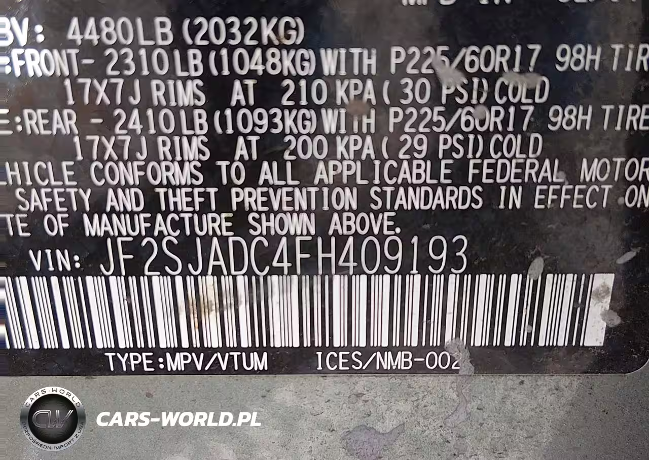 IAAI Nr: I-44832195 VIN: JF2SJADC4FH409193 Port: Los Angeles, CA