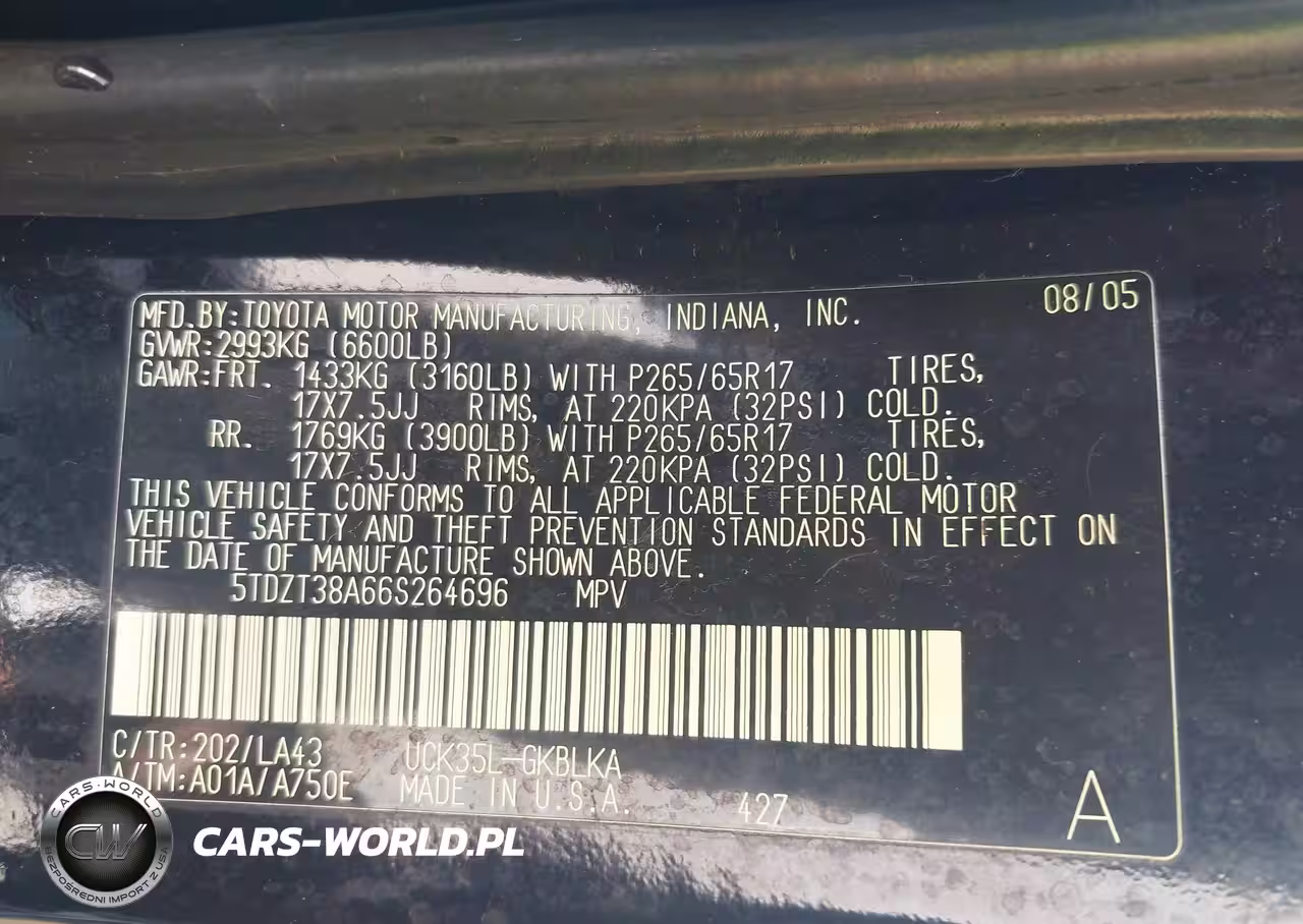 IAAI Nr: I-44832367 VIN: 5TDZT38A66S264696 Port: Los Angeles, CA