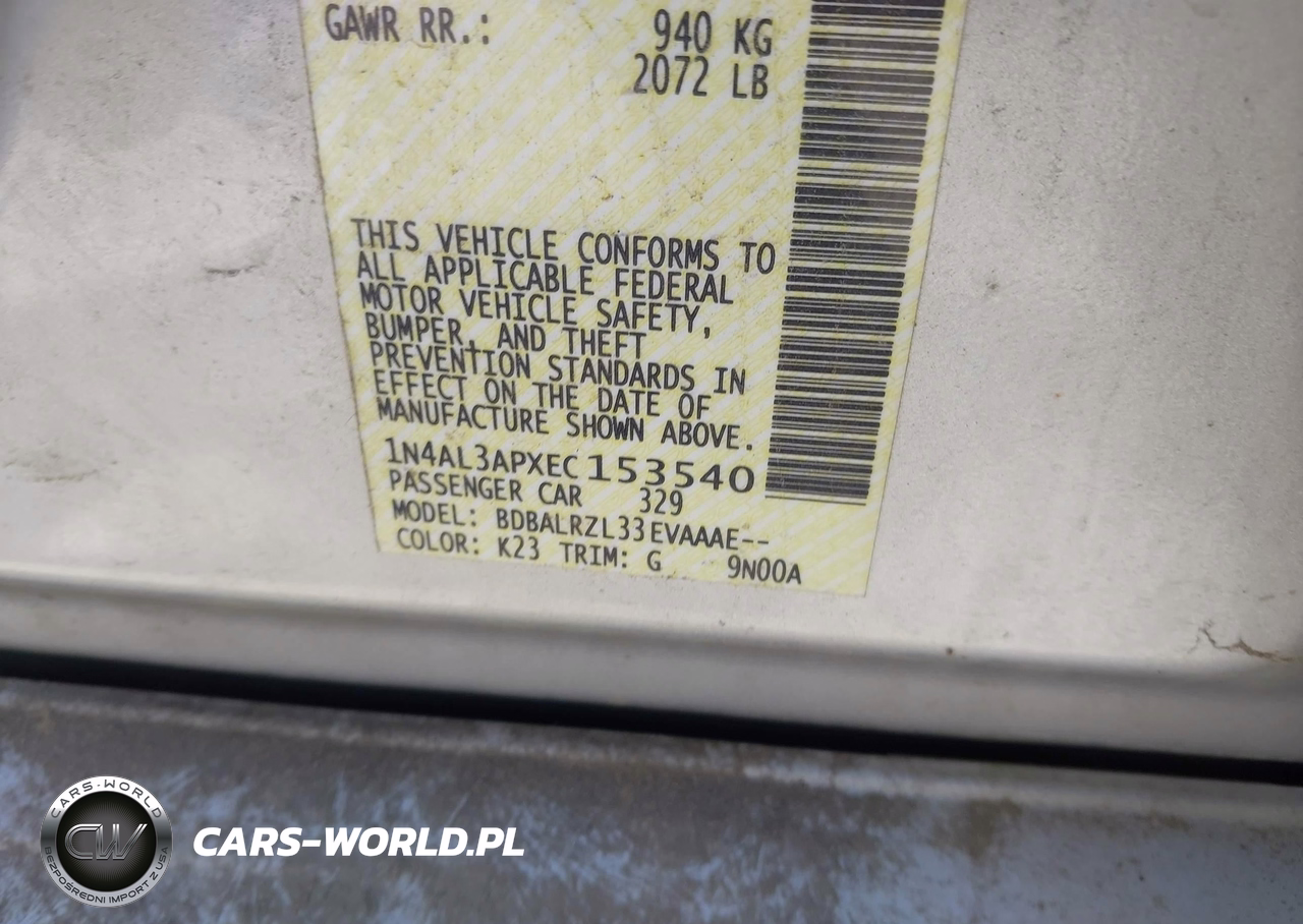 IAAI Nr: I-44832462 VIN: 1N4AL3APXEC153540 Port: Elizabeth, NJ