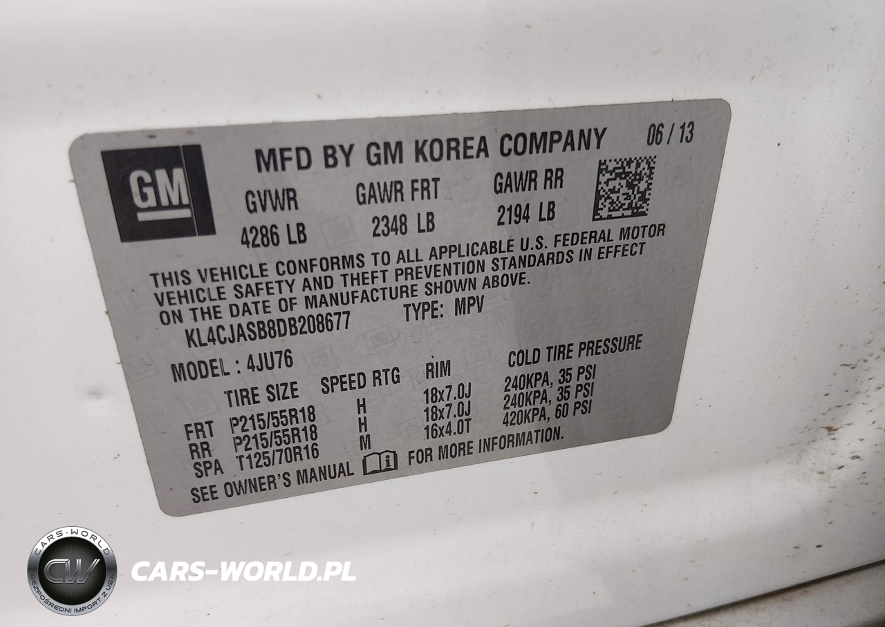 IAAI Nr: I-44832730 VIN: KL4CJASB8DB208677 Port: Houston, TX
