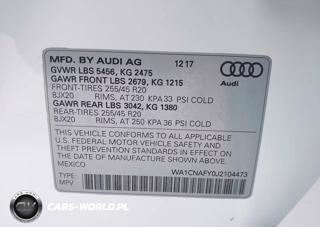 IAAI Nr: I-44832937 VIN: WA1CNAFY0J2104473 Port: Savannah, GA