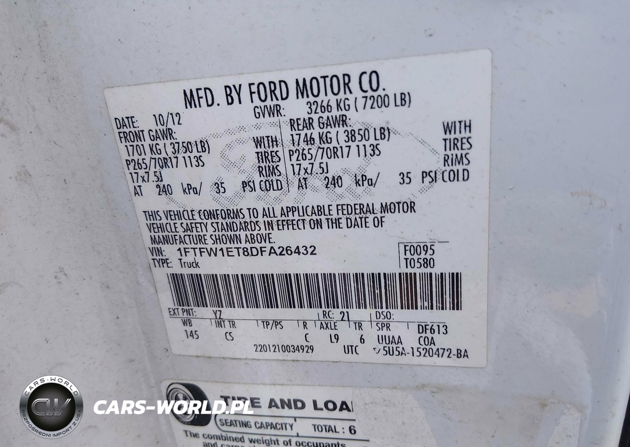 IAAI Nr: I-44833349 VIN: 1FTFW1ET8DFA26432 Port: Savannah, GA
