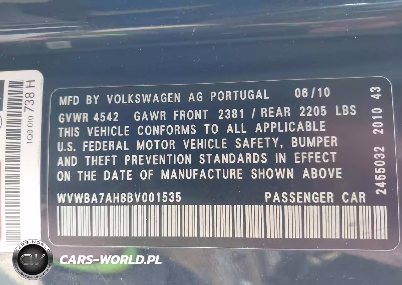 IAAI Nr: I-44833802 VIN: WVWBA7AH8BV001535 Port: Savannah, GA