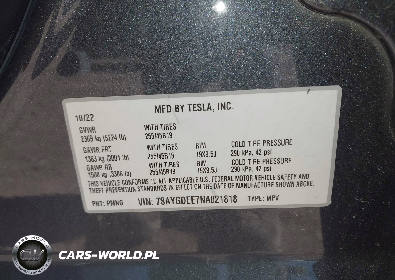 IAAI Nr: I-44833901 VIN: 7SAYGDEE7NA021818 Port: Indianapolis, IN